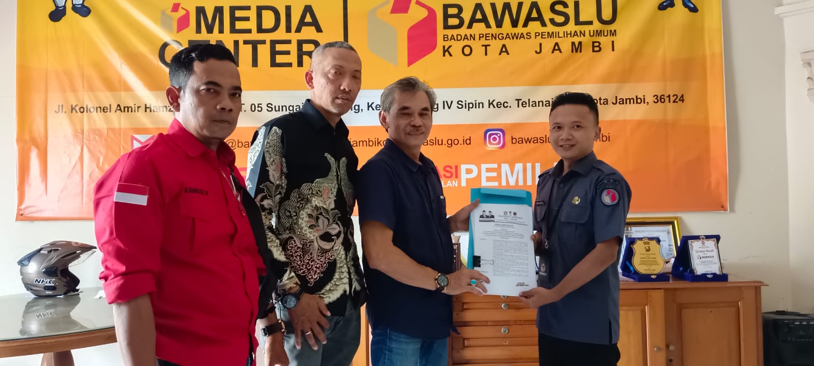 Berkas laporan mereka telah diterima oleh Leha Wati, SH sebagai staf penanganan pelanggaran Bawaslu Kota Jambi.